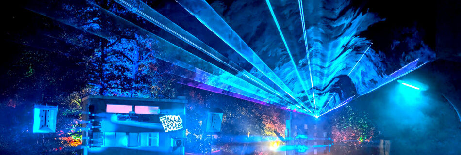 Auf dem 12. Frühlingsfest der Hanseatischen Material Verwaltung habe ich über 3 Nächte vom 22. – 24.05.2025 eine Laserinstallation präsentiert, welche den kompletten Outdoorfloor Sonnendeck überspannte und sich nahtlos in das Gestaltungskonzept der Veranstaltung eingepasst hat. Die Installation bestand aus 4 Spiegeln und einer speziellen Linse, welche Laserprojektionen schräg aufteilt.